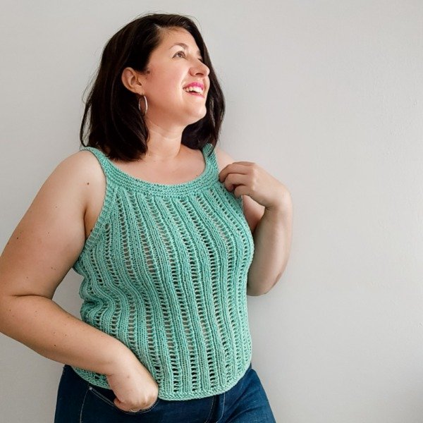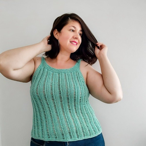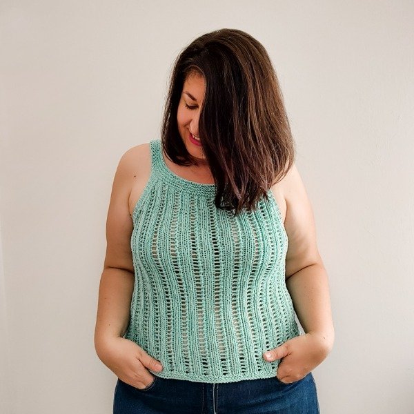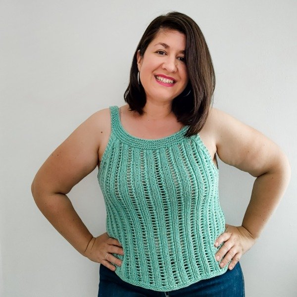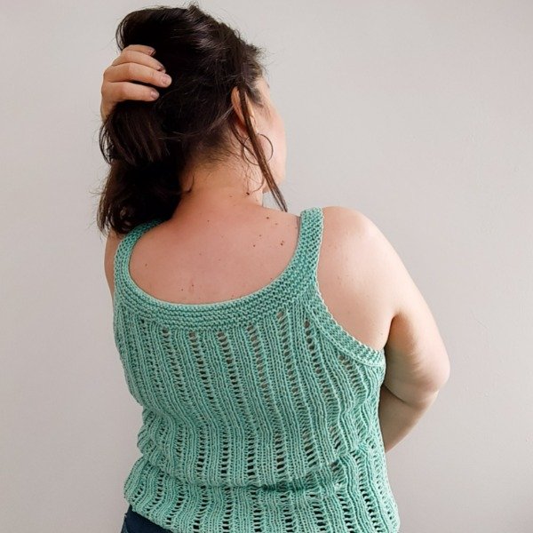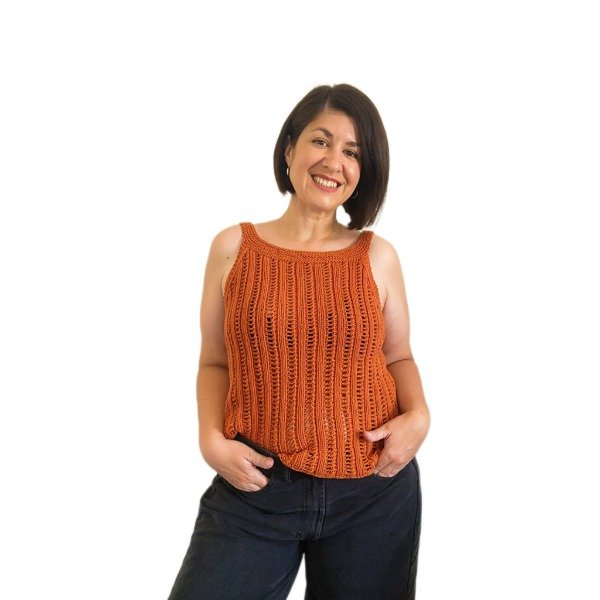 La Musculosa Sophia es un diseño para tejer en agujas circulares, a medida, sin costuras y con una trama super fresca e ideal para el verano.