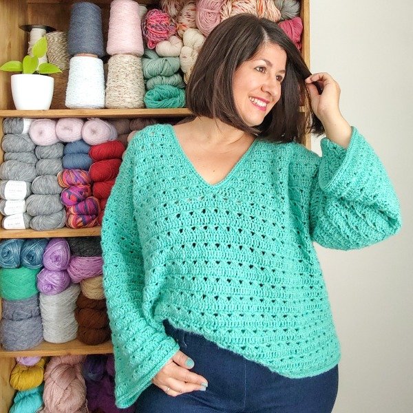 Te traigo un nuevo diseño con escote V perfecto, para tejer conmigo en crochet, en 5 talles desde el S al 2XL, en donde aprenderás a realizar la prenda SIN COSTURAS con una trama super linda y divertida de tejer, terminaciones en falso icord (símil dos agujas) y muchos tips que te van a encantar!