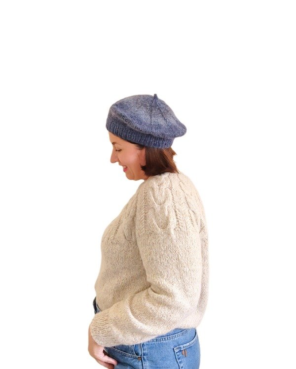 ✓Cantidad de hilado: utilicé 35 gramos de Lucy lace doble en la boina azul, 46 gramos en la de color crudo combinando Atuel y mohair y 78 gramos de amancay ocre o mostaza.